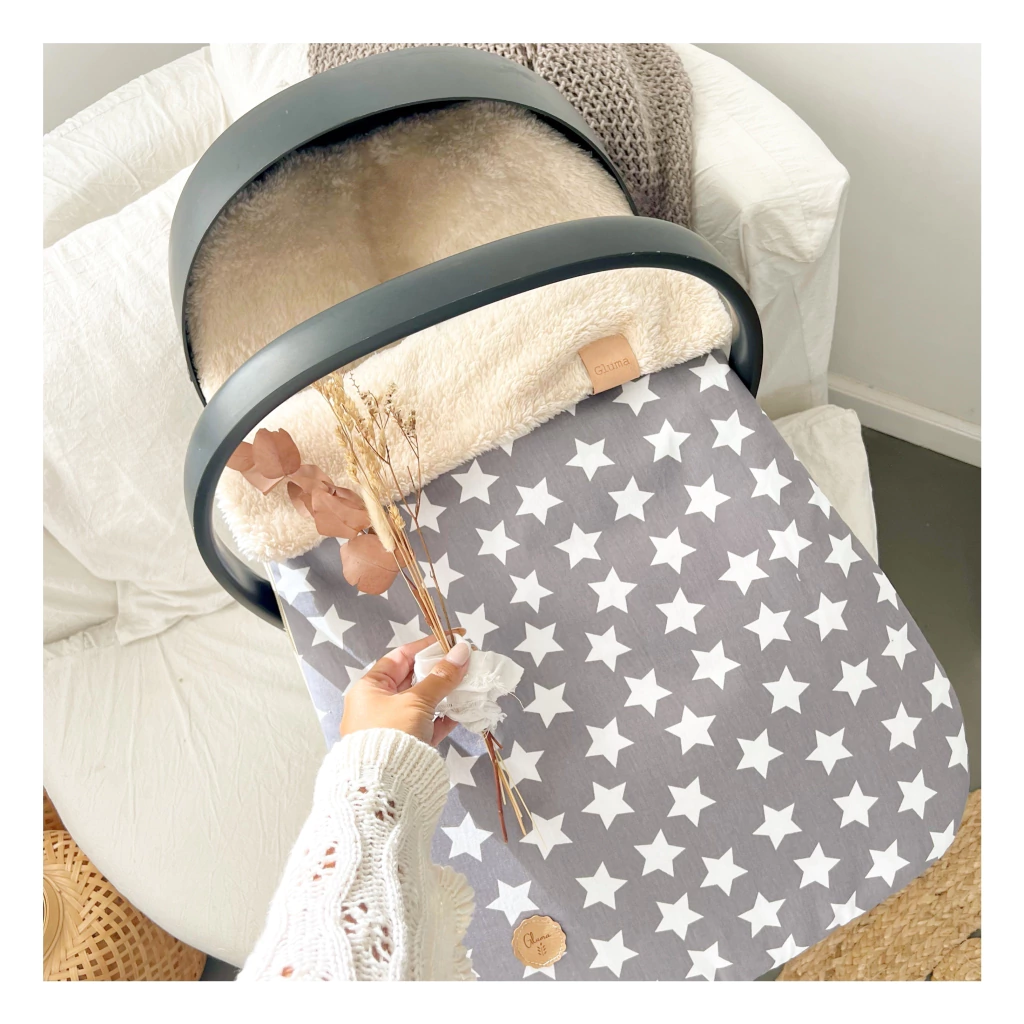 Porta Enfant de Gabardina estampada con todo el interior de cordero Beige premium, super suave.